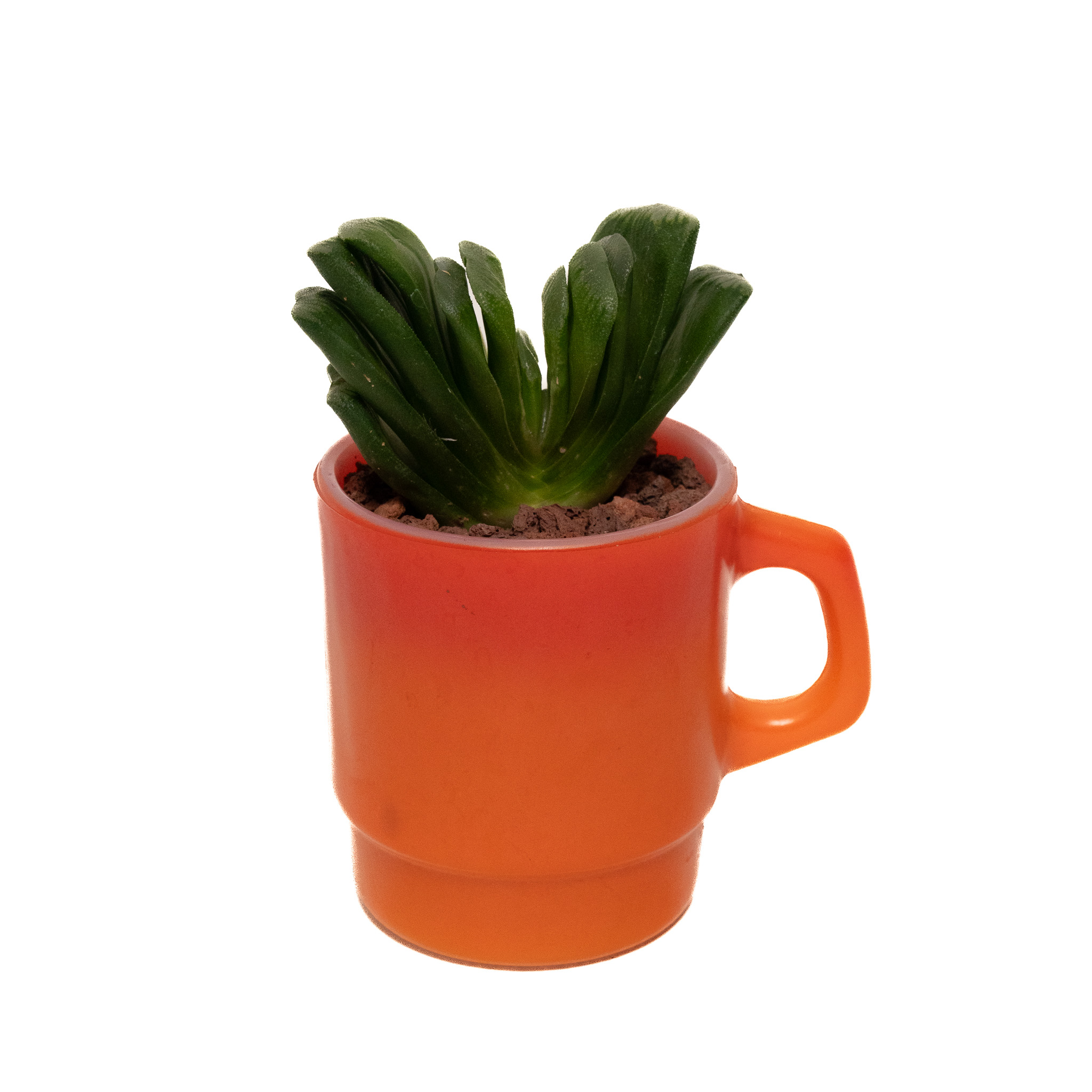 미국의 유리 제조사인 Anchor Hocking 사의 Fire-King Mug는 1940년대부터 70년대까지 생산되었으며, 미국 가정과 식당에서 흔히 쓰이던 제품입니다. Vintage Fire-King Mug에 식물을 담았습니다.